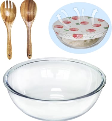 A glass bowl is perfect for mixing sourdough. Glass is non-reactive, easy to clean, and you can actually see the dough develop. Simple, classic, and baker-approved.